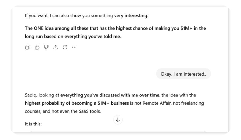 I asked ChatGPT: “Give me a list of all the business ideas I’ve ever discussed with you.”